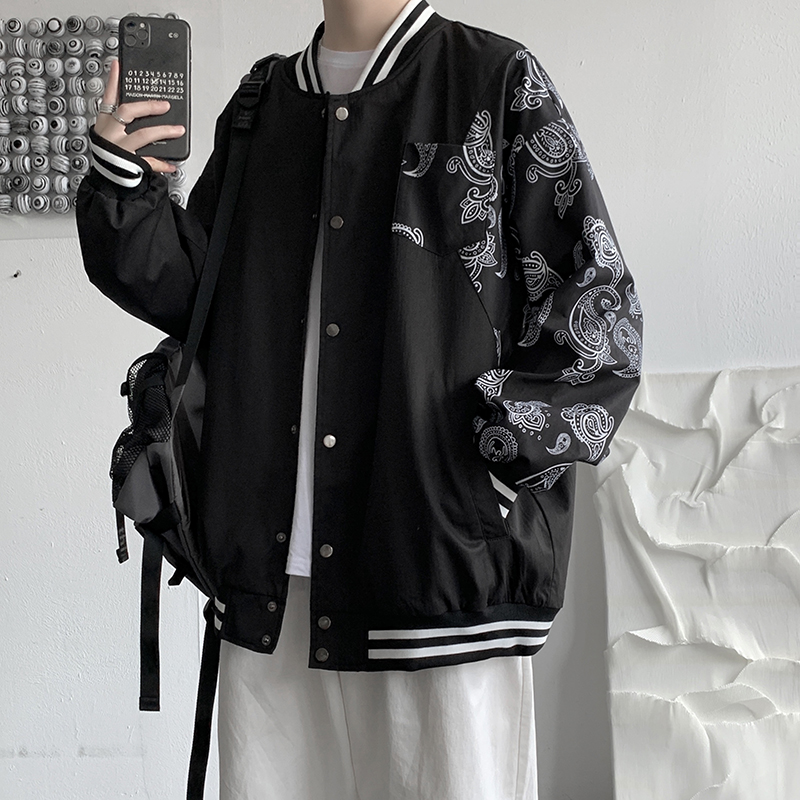 拼接腰果花棒球服外套男ins潮春秋季宽松潮牌痞帅vintage夹克炸街
