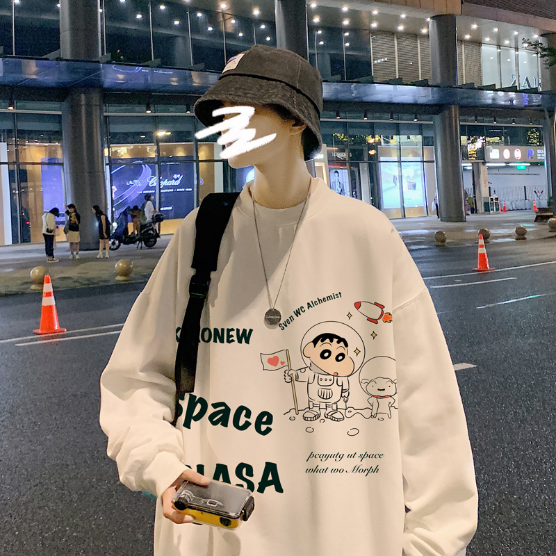 宇航员印花卫衣男士潮ins港风圆领宽松春秋季高街套头大码上衣服