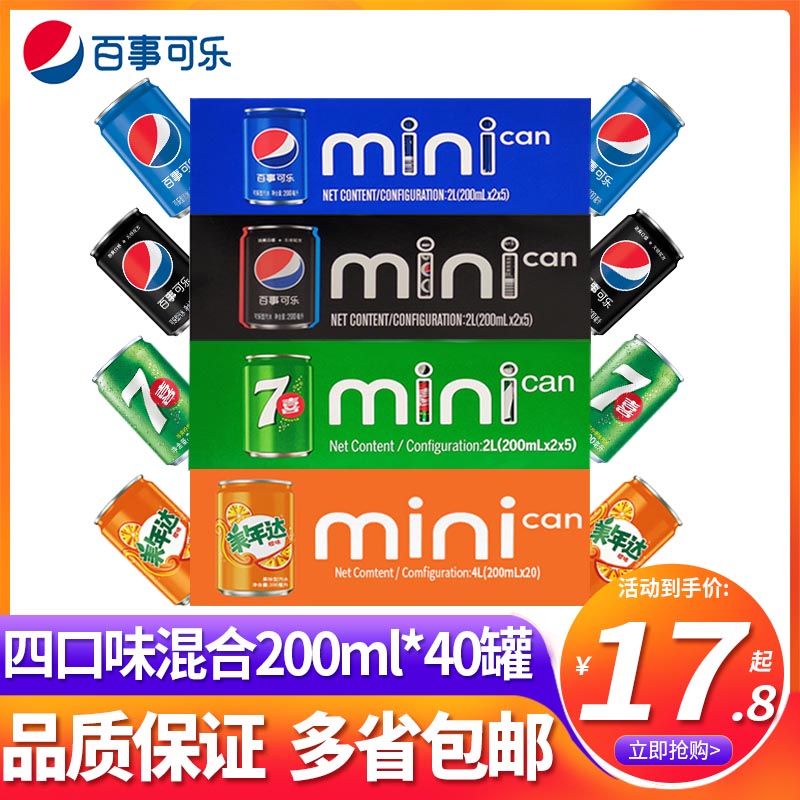 百事可乐mini迷你罐200ml*20罐装整箱极度无糖可乐美年达碳酸饮料
