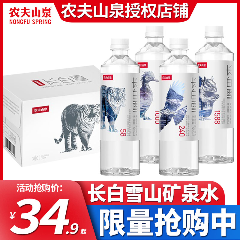 农夫山泉长白雪天然矿泉水535ml*24瓶整箱小学生运动盖饮用纯净水