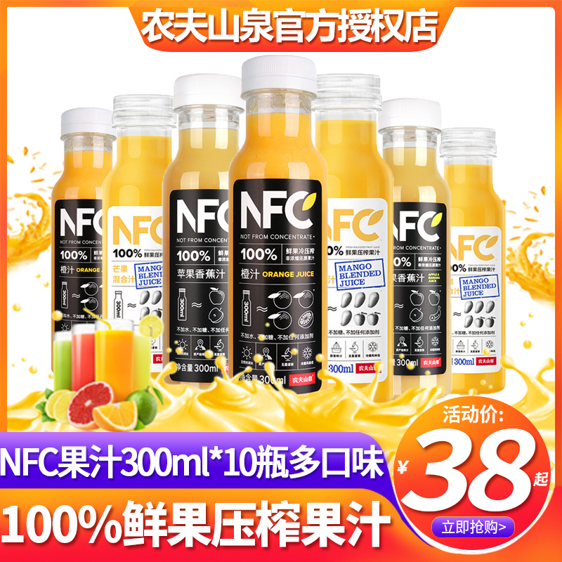 农夫山泉NFC橙汁300ml*6瓶苹果香蕉汁鲜榨果蔬汁饮料芒果汁