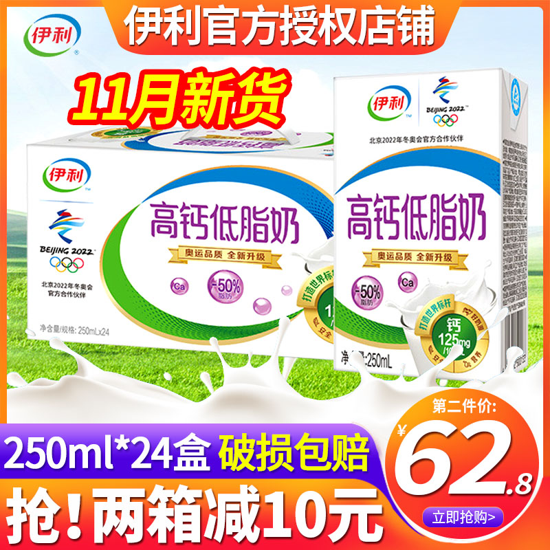 伊利高钙低脂牛奶250ml*24盒整箱装批特价儿童学生营养早餐礼盒纯